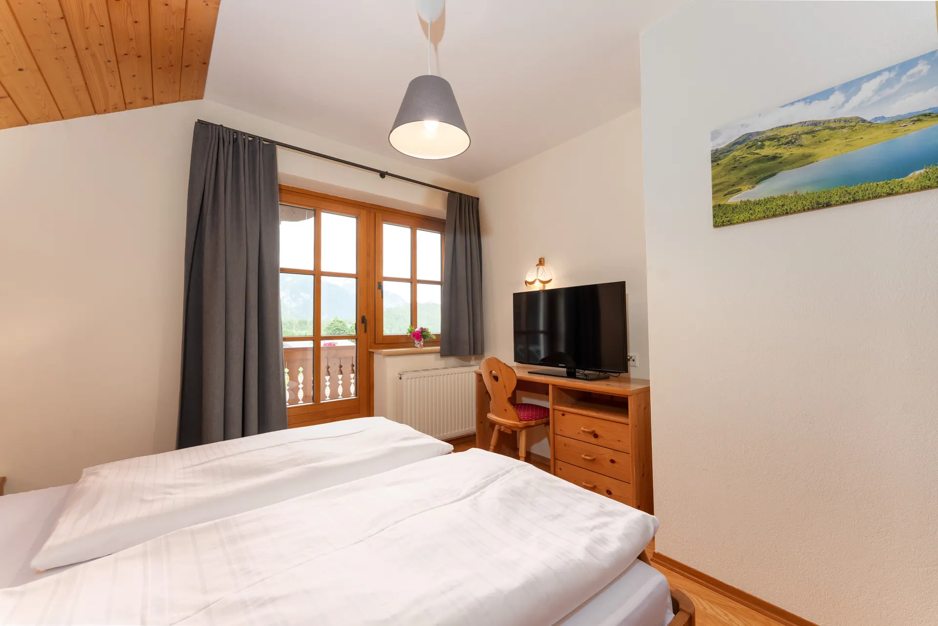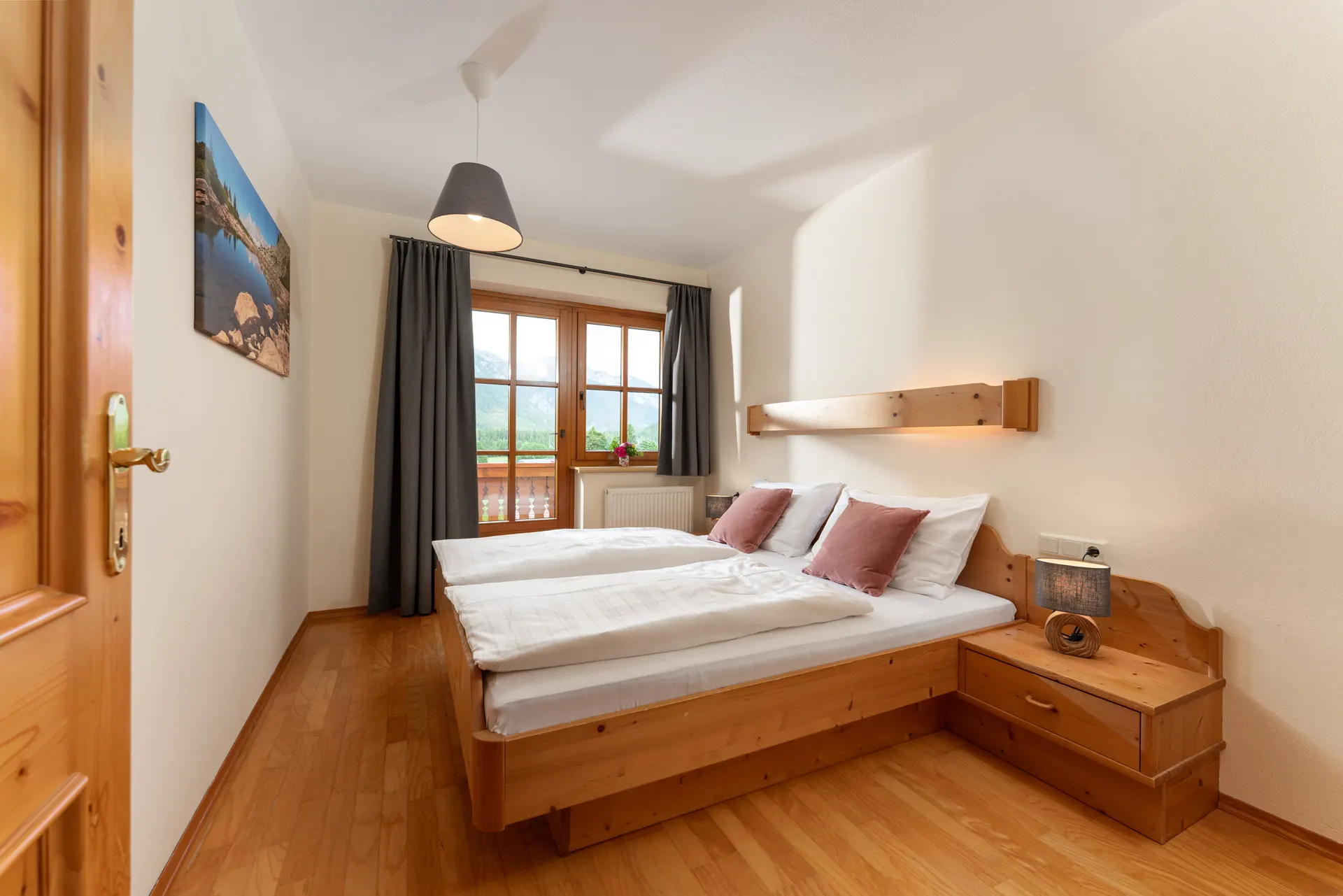 Unser größtes Appartement im Landhaus Birgbichler hat einen Vorraum, Dusche und WC sind getrennt, 2 Schlafzimmer und ein Bad mit 2 Waschbecken. Vom Wohnraum und von beiden Schlafzimmern aus gelangt man auf den großen Holzbalkon mit Sicht auf die Scheichenspitze. Unser Familienapartment für 2-4 Personen mit reichlich Platz.