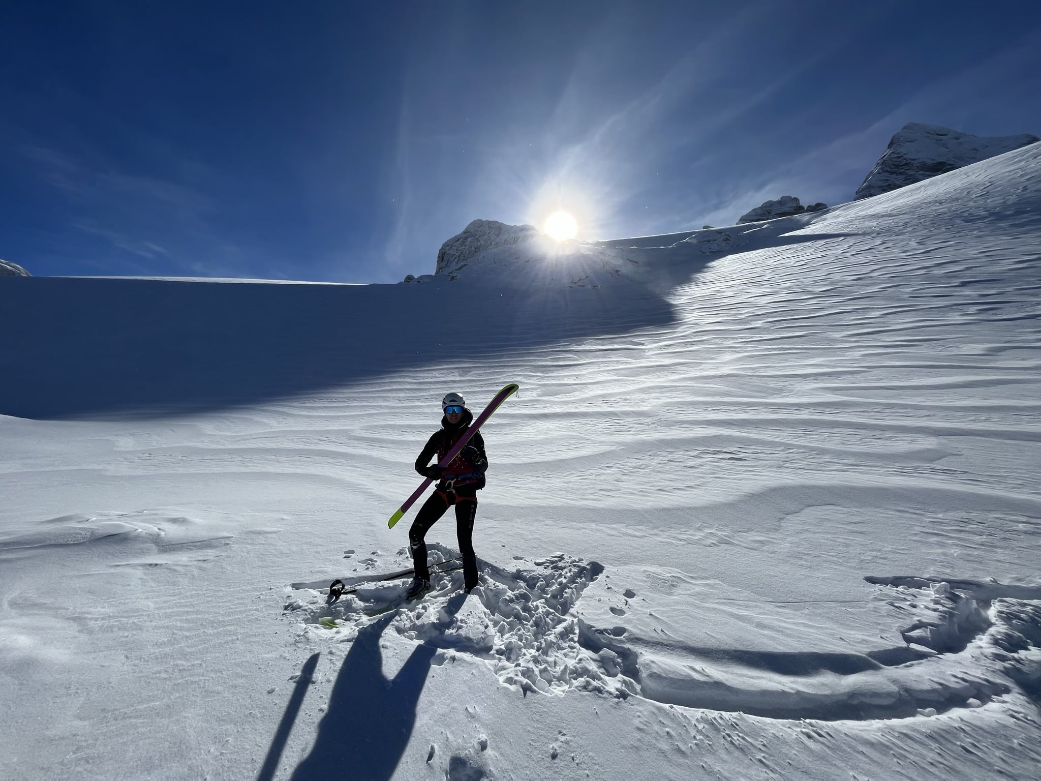 In winter, we offer daily skimo tours for beginners, and advanced skiers and, of course, FREERIDING.
